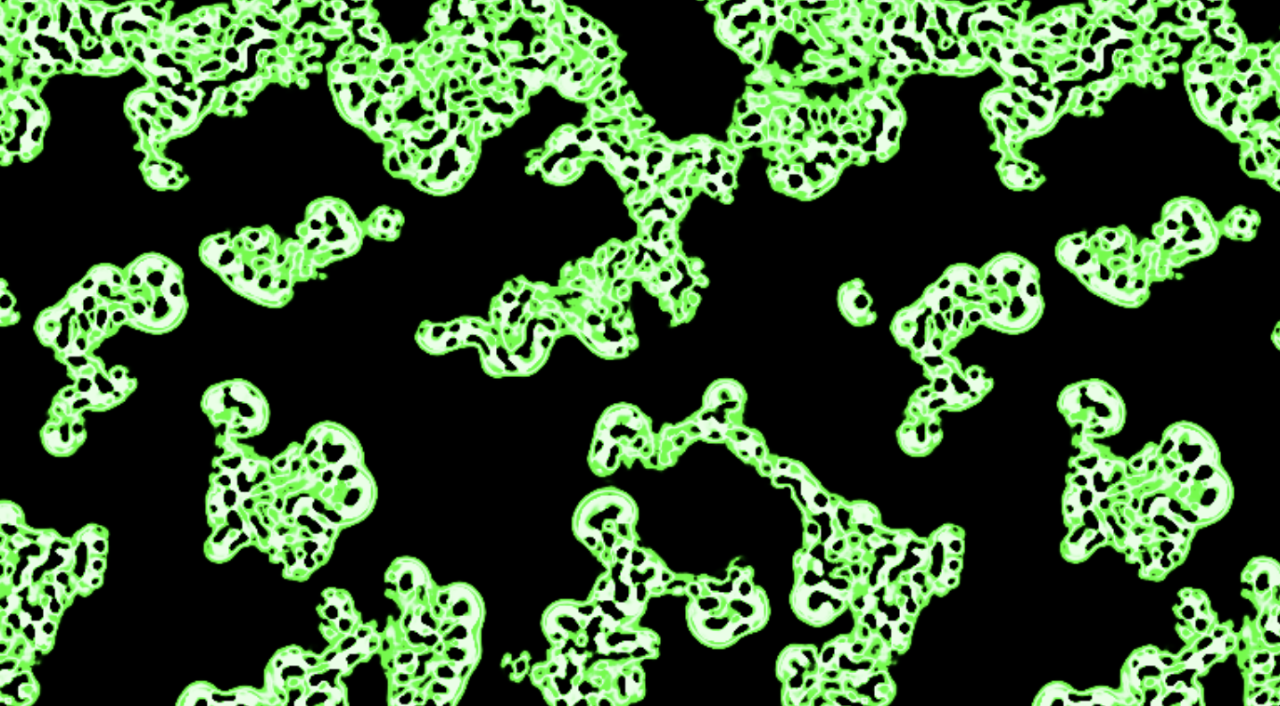 (Difference between D3 and D5): Here, you can see the difference between same color but different octaves. On 5th octave, the outline is way thicker and the background color converges to the blue outline color of the cell clusters. On 3rd octave, the outline gets only slightly thicker over time.